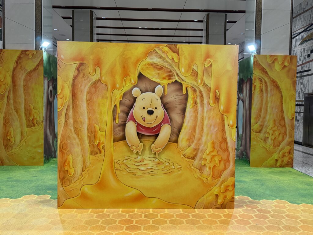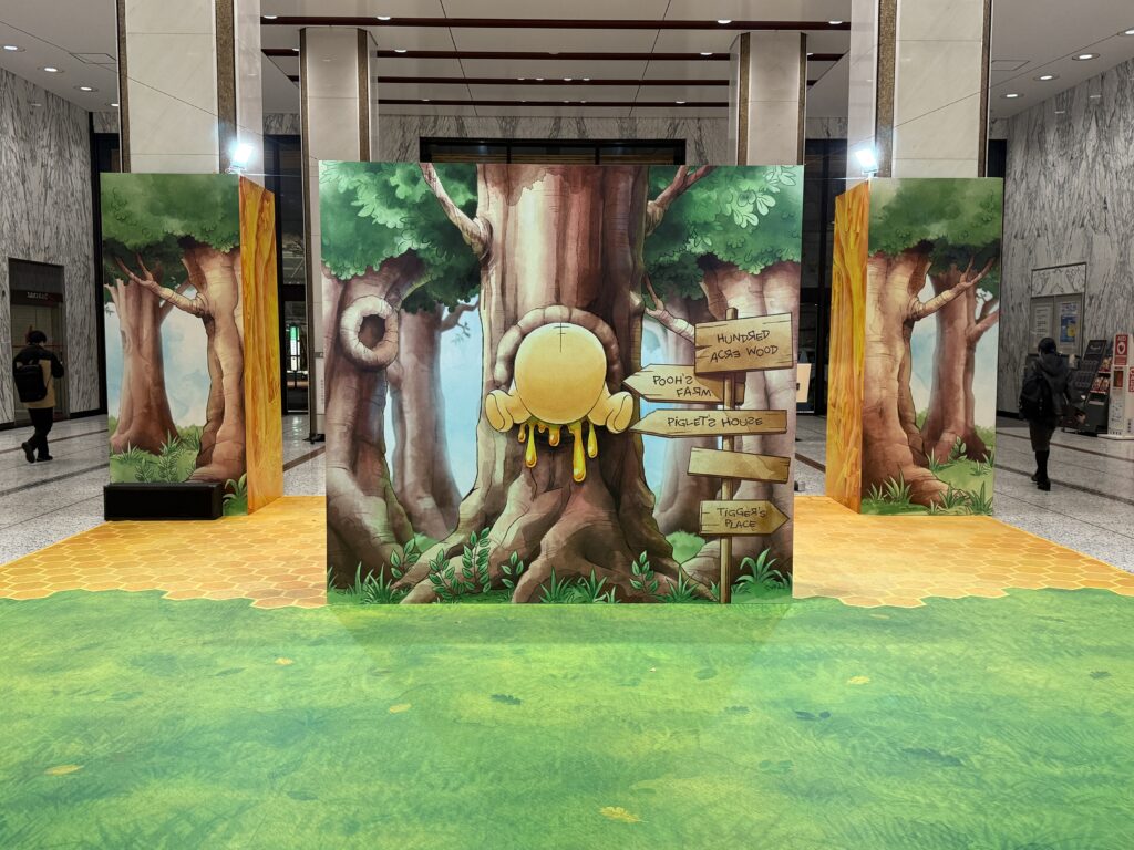 最後にこれらのフォトスポットからは少し離れた場所にあるプーさんのフォトスポットに行ってきました。はちみつにまみれて幸せそうなプーさんの姿が。。。